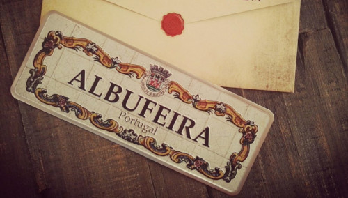 Representation of the toponymic plate of the city of Albufeira. The Albufeira plate illustrates one of the old tiles panels that nowadays identify some of the streets of this city, one of the most popular in the Algarve.